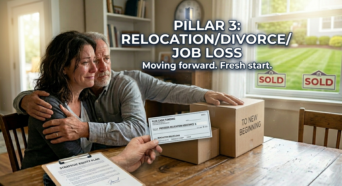The Problem: You need to move now—for a job, divorce, or safety—but your equity is "locked" in your current house, and you can't wait months for a traditional sale to get the cash to move.